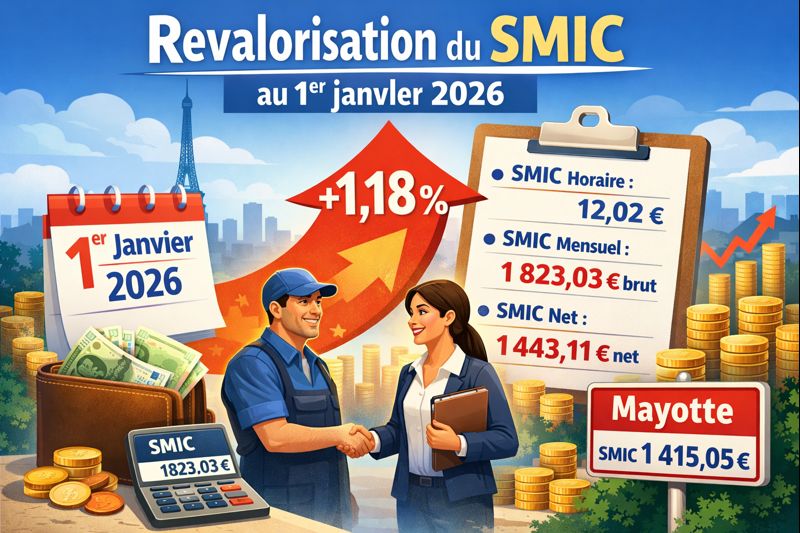 Comme chaque année, le salaire minimum interprofessionnel de croissance (SMIC) fera l’objet d’une revalorisation automatique au 1er janvier. En 2026, cette hausse s’élèvera à 1,18 %, portant le SMIC mensuel brut à 1 823,03 euros pour un salarié à temps plein travaillant 35 heures par semaine. Cette revalorisation s’inscrit dans un cadre légal précis, visant à garantir le pouvoir d’achat des salariés les plus modestes. Le SMIC trouve son origine dans le salaire minimum interprofessionnel garanti (SMIG), créé par la loi du 11 février 1950, dans un contexte de forte inflation d’après-guerre. Le SMIG avait pour objectif principal de préserver le pouvoir d’achat des travailleurs face à la hausse des prix. Le SMIC, tel qu’il existe aujourd’hui, est instauré par la loi du 2 janvier 1970. Il marque une évolution majeure en intégrant non seulement l’inflation, mais aussi la croissance économique, afin de permettre aux salariés modestes de bénéficier des